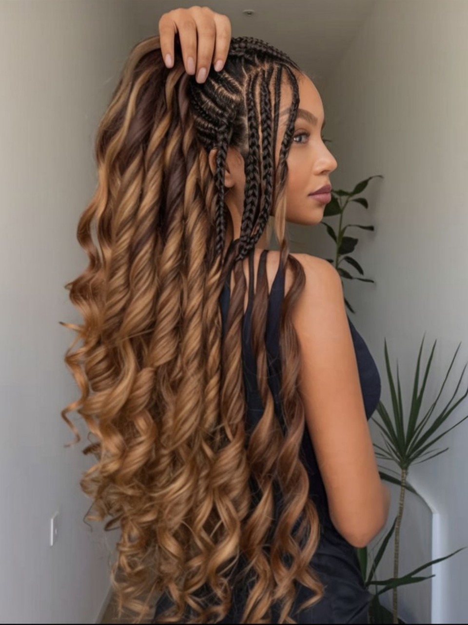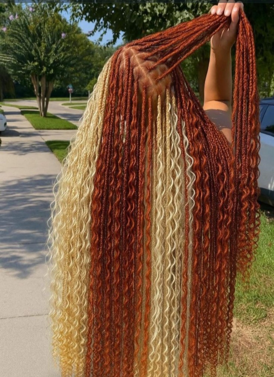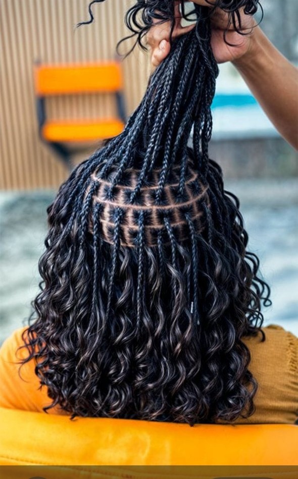 Bohemian braids are a more relaxed and textured version of traditional box braids, often incorporating loose, curly strands to give a free-flowing, boho-chic vibe. They offer a less structured look compared to classic box braids.